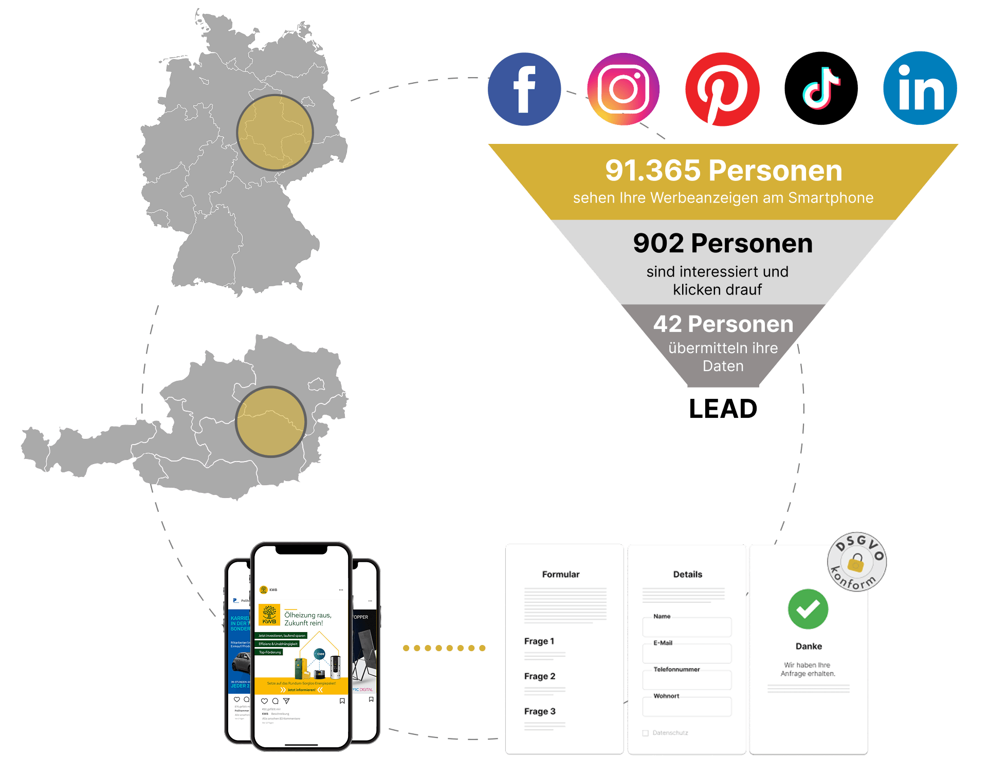Individuelle Prozesse zur automatisierten Neukundenfindung. Exklusiv und aus Ihrer Region und 24h täglich aktiv.